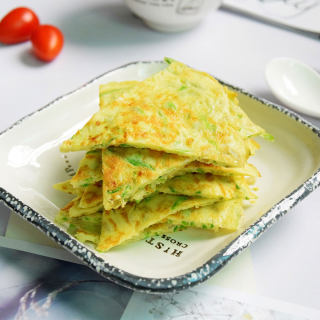 (3)平底鍋刷一層植物油燒熱,倒入蛋糊,攤平,上下煎熟即可。