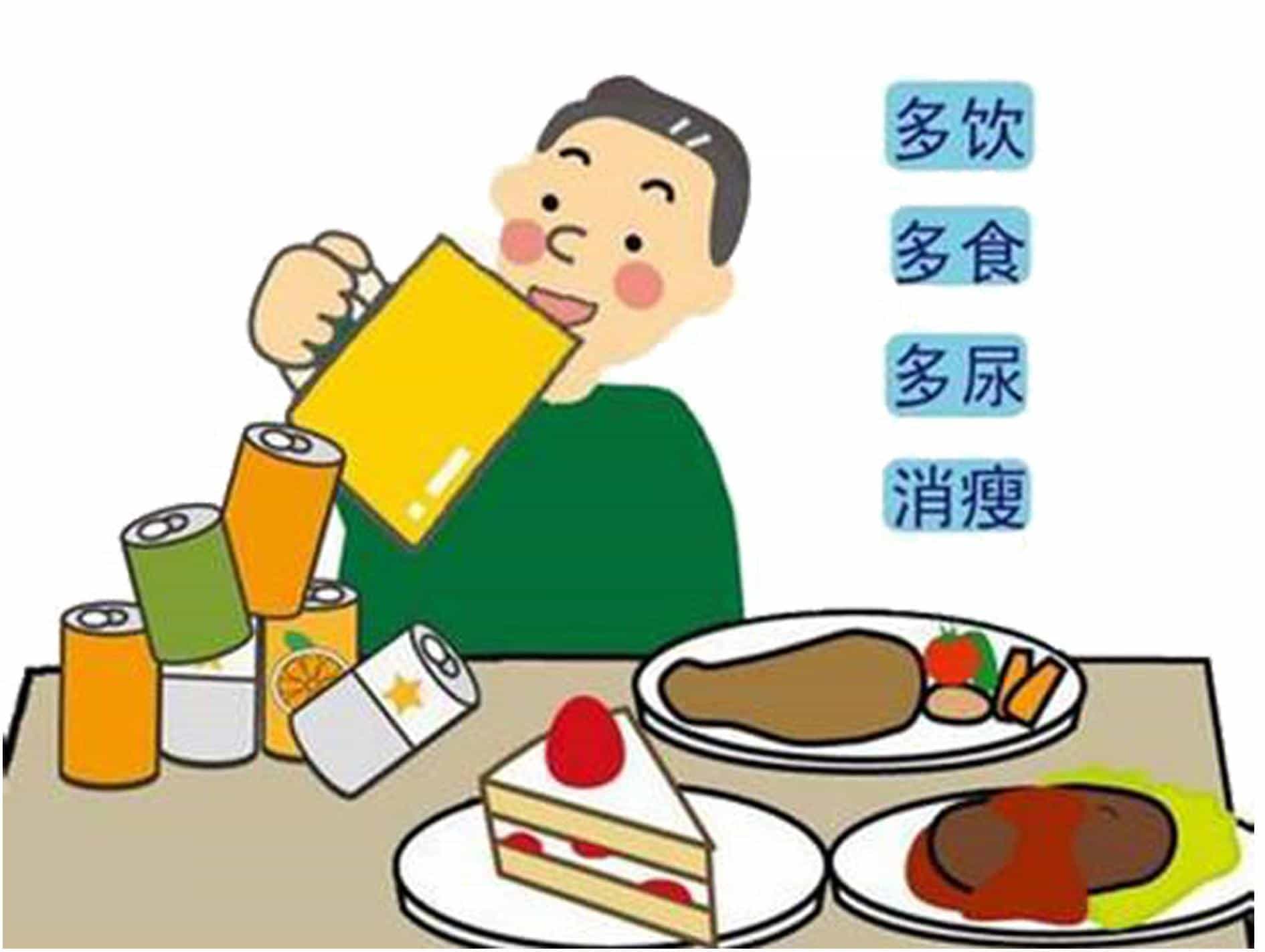 其主要特點(diǎn)是血糖增高,臨床表現(xiàn)為多飲多食多尿,即“三多一少”癥狀。